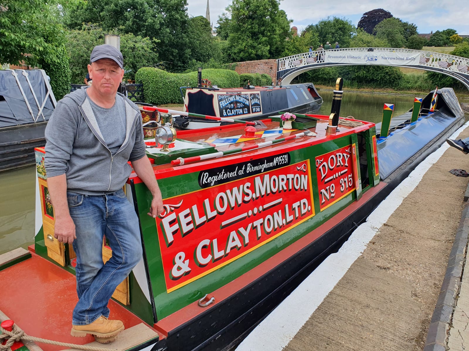 One name that kept coming up during my time at the Braunston event was Dave Ross. He had been suggested as a potential interviewee by Keith and Andy on steam tug Hasty, who had procured his services during the build of their boat. Apparently, Dave’s historic narrowboat Dory was a sight to behold, and they weren’t wrong. Moored, pride of place inside the marina, the boat looked so good in her freshly painted Fellows, Morton & Clayton livery that she might have just been launched from a boat-builder’s yard.