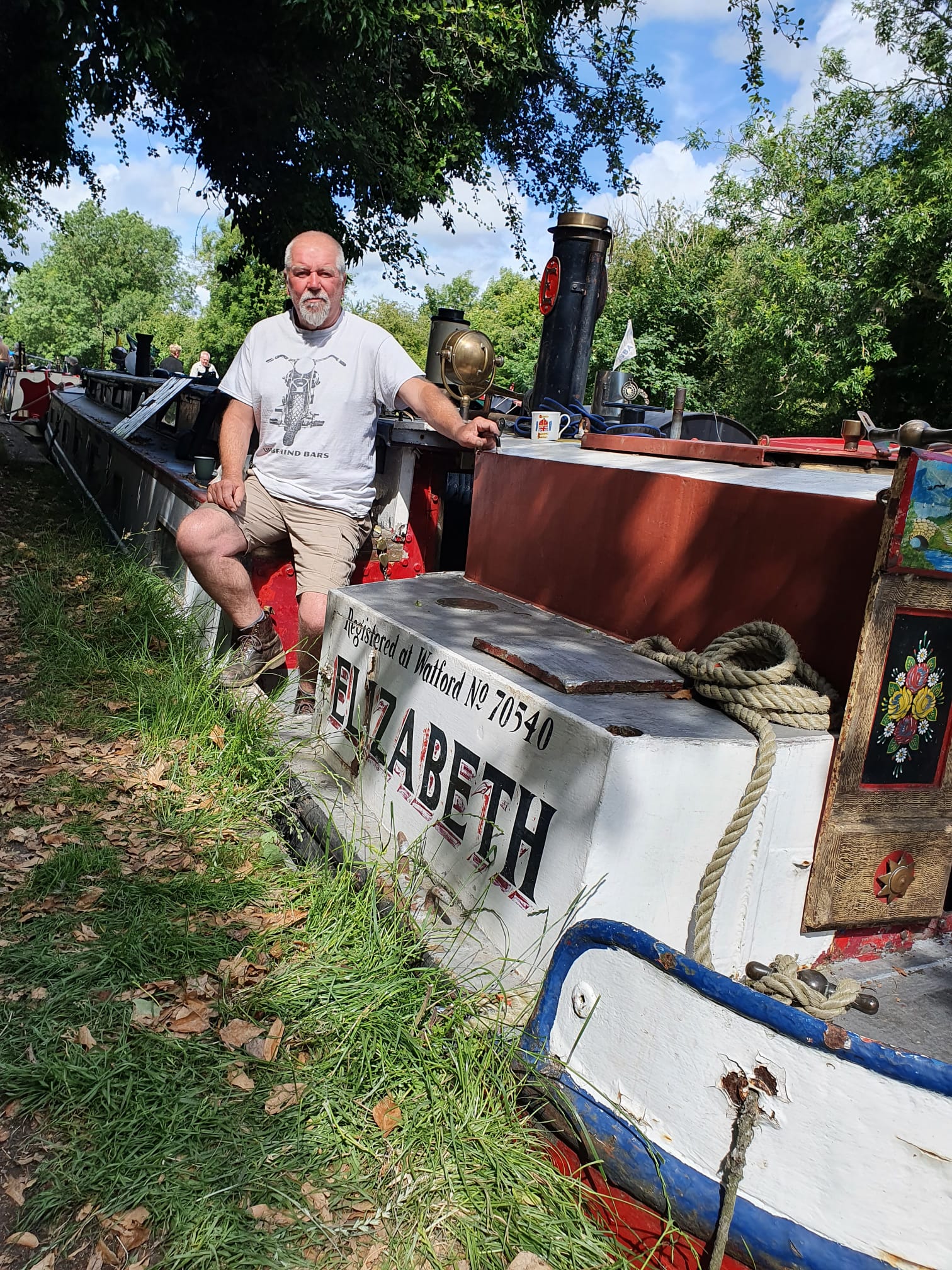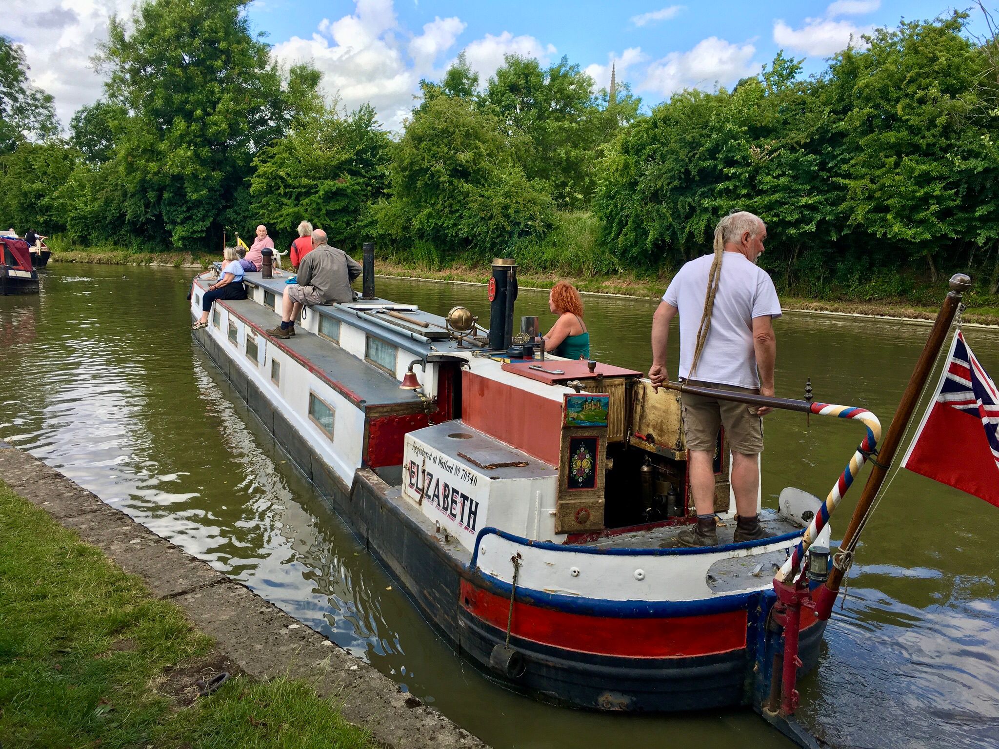 I’d spotted Elizabeth early on the first day of the rally. In fact, I hadn’t just spotted it – it stuck out like a proverbial sore thumb because it was unlike any narrowboat I’d ever seen before. I was pleased, therefore, to find its owner, Martin, sat on the roof chatting with other boaters when I went past.