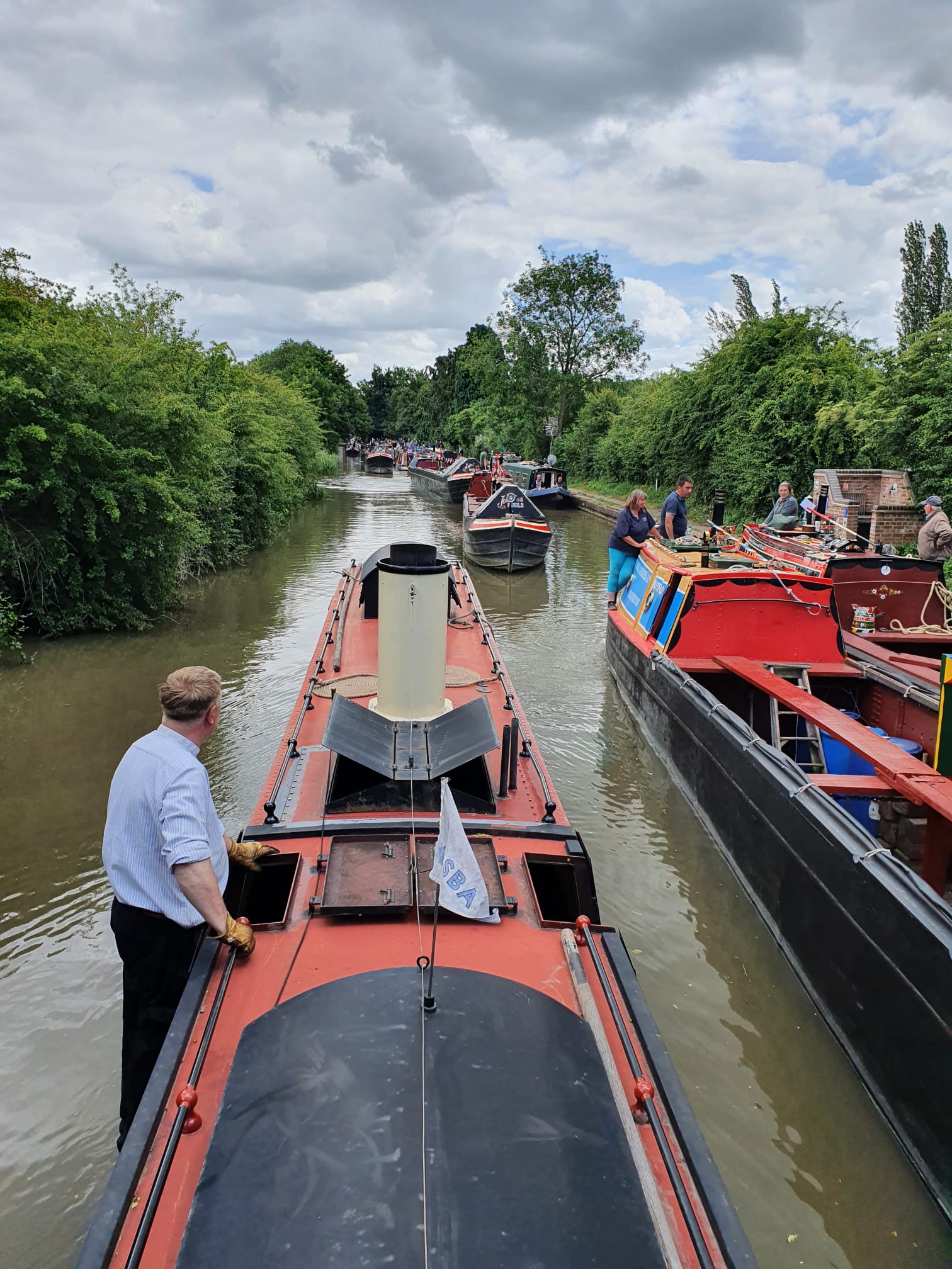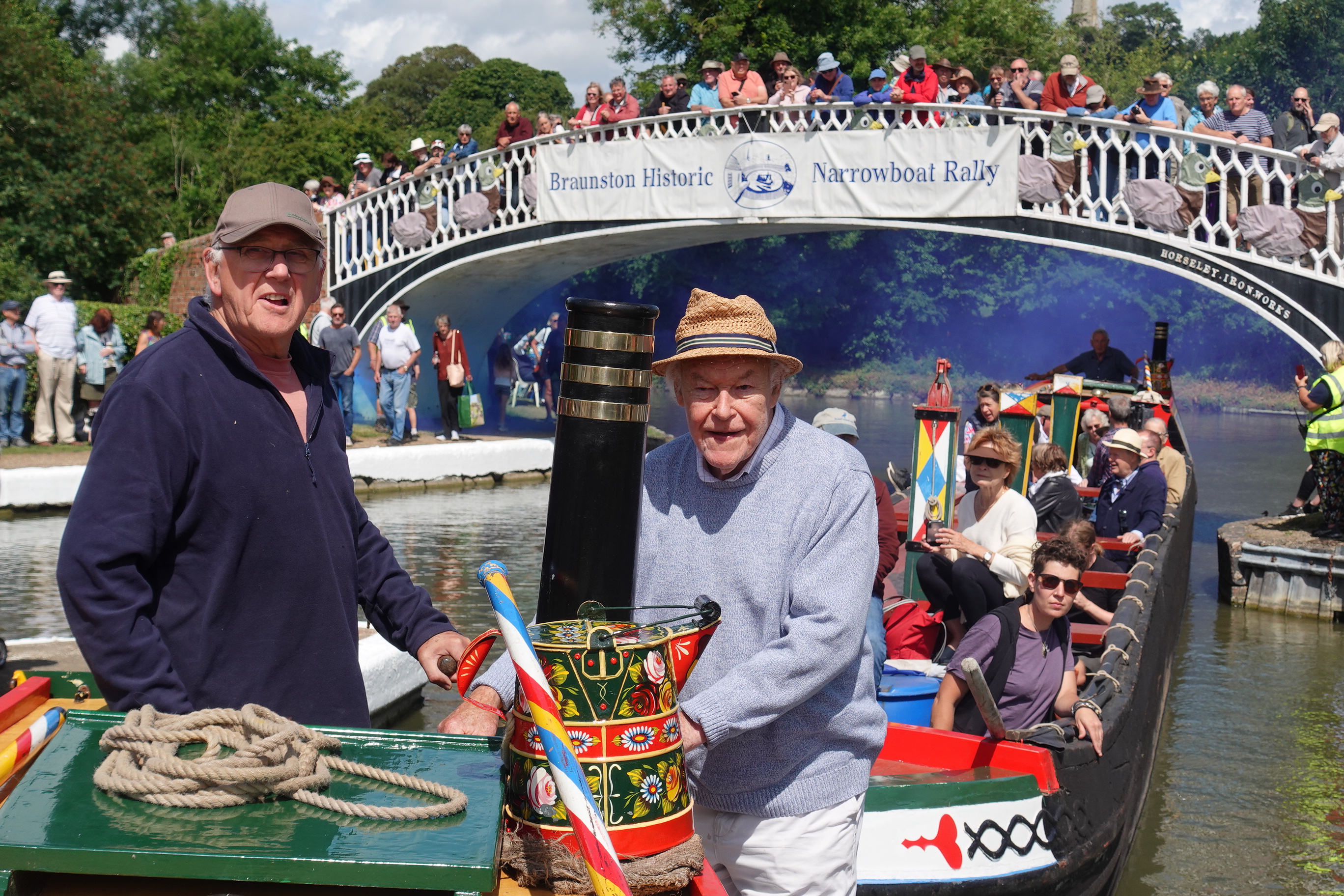 Having been offered the opportunity to help crew the boat during the rally’s celebrated boat parade, I was stationed at the tiller with Hasty’s skipper Andy, and given a very important job. “Toot the whistle,” I was told, as Andy handed me the length of rope connected to the boat’s steam-powered whistle. “The gongoozlers love it!” So, toot I did, at every available opportunity. And the onlookers did indeed love it. It was only later I found out that I’d almost deafened Keith on several occasions by sounding the whistle while he was standing next to it. And that’s also how I managed to make the aforementioned small child cry.